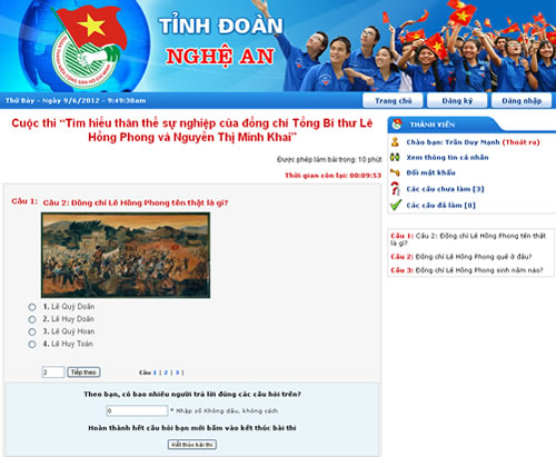 Website thi trắc nghiệm trực tuyến Tỉnh Đoàn Nghệ An